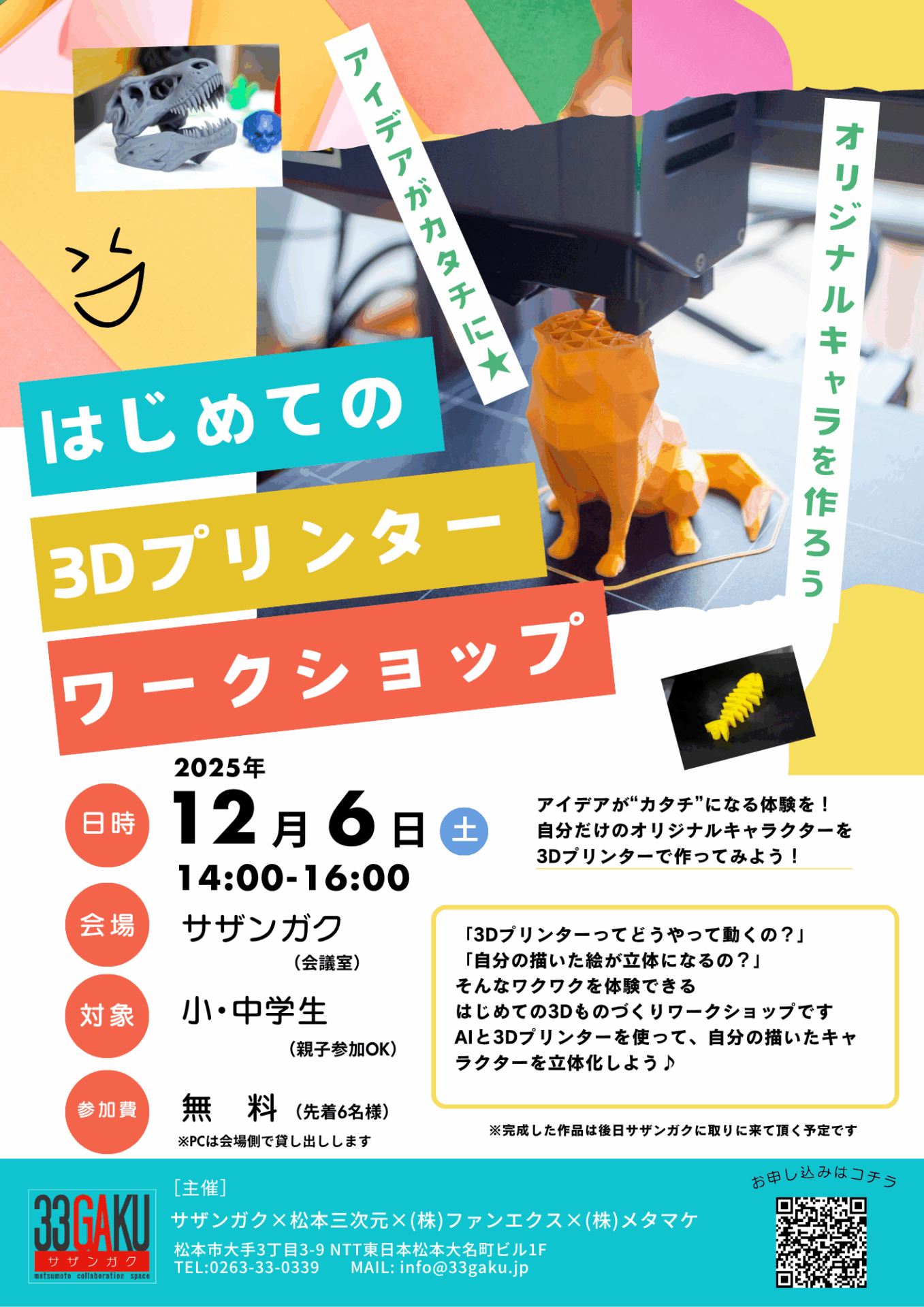 そんなワクワクを体験できる、はじめての3Dものづくりワークショップです。